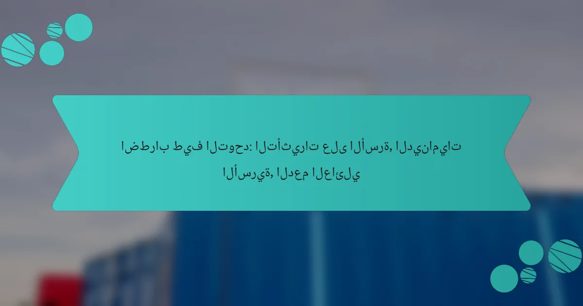 يعتبر اضطراب طيف التوحد من العوامل التي تؤثر بشكل عميق على الأسرة، حيث يواجه الأهل تحديات نفسية واجتماعية ومالية تتطلب منهم التكيف مع احتياجات أطفالهم الخاصة. يتطلب هذا التكيف تغييرات في الديناميات الأسرية، مما يؤثر على الأدوار والعلاقات داخل الأسرة. من المهم توفير الدعم المناسب للأسر لمساعدتها في التعامل مع هذه التحديات اليومية.